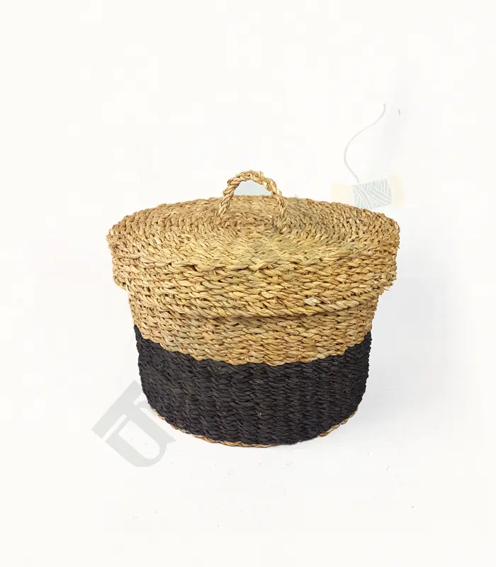 Handwoven Hogla Small Size Storage Basket with Lid