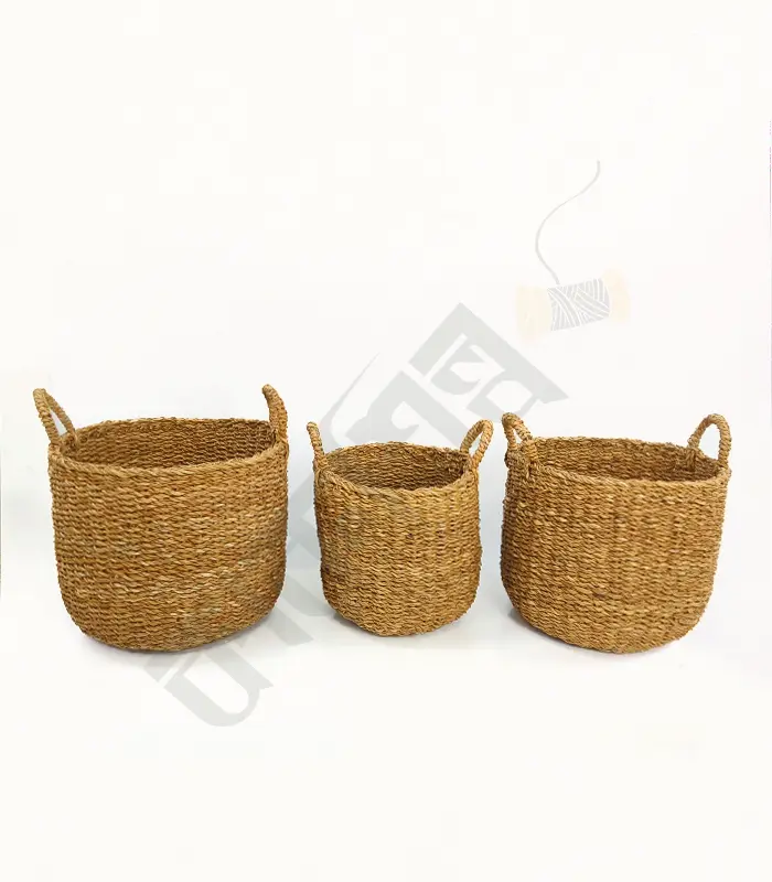 Seagrass Handwoven Natural Planter Baskets with Handles set of 3